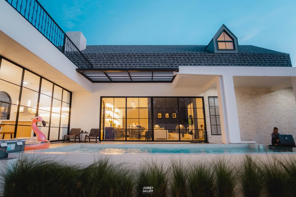 -พื้นที่ 115 ตร.วา -พื้นที่ใช้สอย 228 ตร.ม. -3ห้องนอน 3 ห้องน้ำ พร้อมอ่างอาบน้ำห้อง Master -1ห้องโถง (คาราโอเกะ) -1 ห้องครัว -บ้านสไตล์นอร์ดิก -จอดรถได้ 3 -4 คัน -เหมาะสำหรับอยู่อาศัยและลงทุนปล่อยเช่าทำpool villa ได้ ข้อมูลเพิ่มเติม -Double Volume Hall สำหรับบรรยากาศโปร่งโล่ง -Master Bedroom พร้อมอ่างอาบน้ำ -ครัวพร้อมบาร์ และพื้นที่จัดปาร์ตี้ริมสระ -สระว่ายน้ำระบบเกลือซีทรู ขนาด 3x7 เมตร ลึก 1.2 เมตร -มุม Sunken Seating สุดชิลสำหรับพักผ่อน -ดาดฟ้าส่วนตัว มองเห็นวิวภูเขา -สามารถพักได้ไม่เกิน 13 ท่าน -หลุมปาร์ตี้ริมสระซีทรู พร้อมเตาปิ้งย่าง -หลังคาจั่ว สูง 7 M. โปร่ง เย็นสบาย -ห้องทานอาหาร ริมสระว่ายน้ำ -อุปกรณ์ครัวครบ ทำอาหารได้ -มีแม่บ้าน ให้บริการ เพิ่มความสะดวกสบาย -มี รปภ. รักษาความปลอดภัยในโครงการ ตลอด 24 ชม. สิ่งอำนวยความสะดวก -เครื่องน้ำอุ่นทุกห้อง -ไดร์เป่าผม -TV ห้องโถงและห้องmaster -แอร์ทุกห้อง -ตู้เย็น -กาน้ำร้อน -ไมโครเวฟ -หม้อทอด -เตาชาบู -หม้อหุงข้าว -เตาไฟฟ้า -เตา BBQ -โซฟา -อุปกรณ์ครัวครบครัน -อุปกรณ์อาบน้ำ,ผ้าเช็ดตัว -ฟรีน้ำดื่มตามจำนวนผู้เข้าพัก